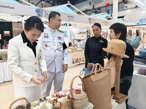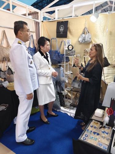โดยมีนายอนุทินชาญวีรกูล นายกรัฐมนตรีและรัฐมนตรีว่าการกระทรวงมหาดไทย พร้อมด้วยนางสาวธนนนท์ นิรามิษ ประธานคณะกรรมการคู่สมรสคณะรัฐมนตรีที่ปรึกษากิตติมศักดิ์สมาคมแม่บ้านมหาดไทย คณะรัฐมนตรี คณะผู้บริหารกระทรวงในสังกัดมหาดไทย คณะผู้บริหารข้าราชการกรมการพัฒนาชุมชน คณะผู้เชี่ยวชาญด้านผ้าไทยและที่ปรึกษาผ้าไทยใส่ให้สนุก ร่วมรับเสด็จฯ พร้อมด้วยนายเชษฐา โมสิกรัตน์ ผู้ว่าราชการจังหวัดนนทบุรี และนางจิราภรณ์ โมสิกรัตน์ นายกเหล่ากาชาดจังหวัดนนทบุรี ร่วมรับเสด็จฯ และเยี่ยมชมและให้กำลังใจผู้ผลิต ผู้ประกอบการ OTOP จากจังหวัดนนทบุรี จำนวน 9 ราย ได้แก่ มาฆะดีไซด์ บ้านไทยซิลล์ ห่มรัก ปณิธาน ขันธะพัฒน์ ศิลป์สุวรรณภูมิ กลุ่มอาชีพสืบสานวัฒนธรรมไทย เอกฉันท์ จันอุไร ไพโรจน์ สืบสาน และArtcrew Armada ซึ่งมาร่วมจำหน่ายผลิตภัณฑ์ผ้าไทยและงานหัตถกรรมภายในงานดังกล่าว
