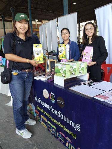 พร้อมกันนั้น สำนักงานพัฒนาชุมชนจังหวัดนนทบุรีได้มีการออกบูธประชาสัมพันธ์สินค้าโอทอป เพื่อเป็นของขวัญรับวันปีใหม่ และบูธประชาสัมพันธ์การรับสมัครสมาชิกกองทุนพัฒนาบาทบาทสตรี ของจังหวัดนนทบุรี ณ วัดต้นเชือก ตำบลบ้านใหม่ อำเภอบางใหญ่ จังหวัดนนทบุรี