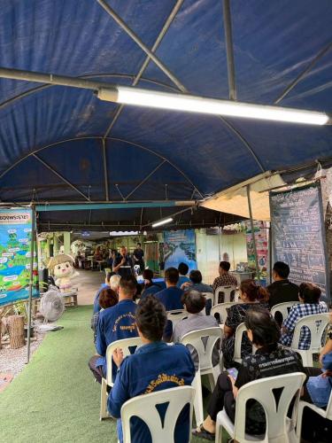 - กิจกรรมสาธิตและ “เอามื้อสามัคคี” เพื่อสร้างการเรียนรู้จากการลงมือปฏิบัติจริง ผ่านฐานกิจกรรมต่าง ๆ ได้แก่ ฐานคนหัวเห็ด ฐานเพาะรัก ฐานปุ๋ยพืชสดจากดอกจอก และฐานปลูกพืช “หลุมพอเพียง” ซึ่งเป็นกิจกรรมที่ช่วยส่งเสริมการเรียนรู้ด้านการจัดการทรัพยากร การเกษตรตามหลักปรัชญาของเศรษฐกิจพอเพียง และการพึ่งพาตนเองในระดับครัวเรือนและชุมชนกิจกรรมในวันนี้