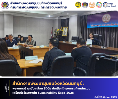 #กระทรวงมหาดไทย #กรมการพัฒนาชุมชน #จังหวัดนนทบุรี #SDGs #SustainabilityExpo2026 #เศรษฐกิจพอเพียง #บำบัดทุกข์บำรุงสุข #นนทบุรีเมืองน่าอยู่