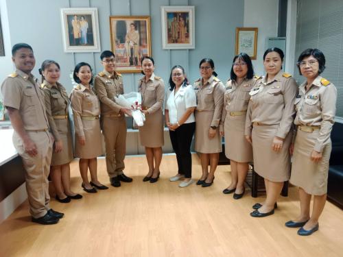 นางประภา ปานนิตยกุล พัฒนาการจังหวัดนนทบุรี พร้อมด้วยผู้อำนวยการกลุ่มงานทั้ง 4 กลุ่มงาน ร่วมให้การต้อนรับ นายภูวดล เจียวเจริญพาณิชย์ (ท๊อป) ข้าราชการบรรจุใหม่ ตำแหน่งนักวิชาการพัฒนาชุมชนปฏิบัติการ (พัฒนากร รุ่นที่ 133) ในโอกาสเข้ารายงานตัวและเริ่มปฏิบัติราชการ ณ สำนักงานพัฒนาชุมชนจังหวัดนนทบุรี